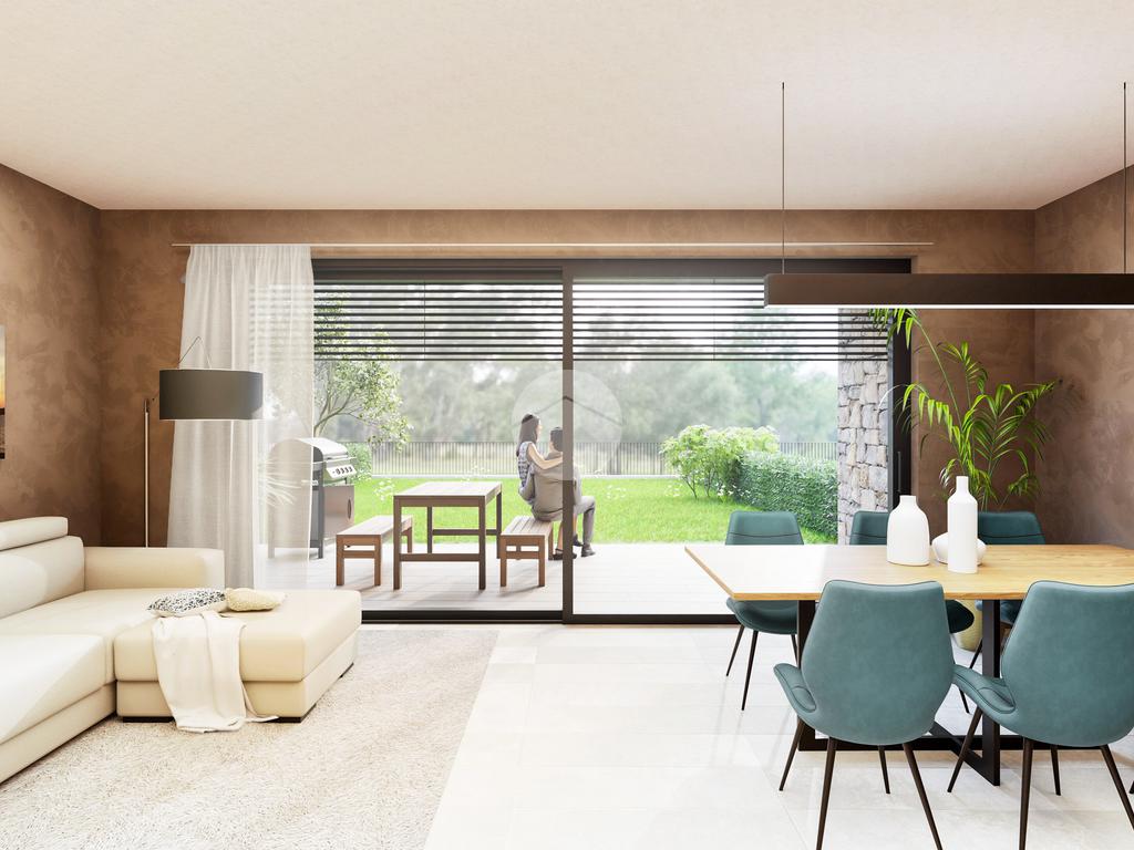 L'immobile che vi proponiamo è un elegante trilocale con doppi servizi al piano terra con giardino privato, composto da una luminosa zona giorno con angolo cottura, nella zona notte sono presenti due camere da letto con l'accesso diretto al giardino sul retro.